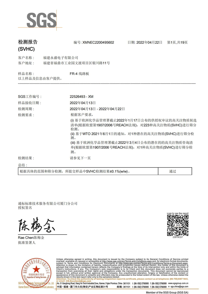 SGS REACH 225項環(huán)保認證